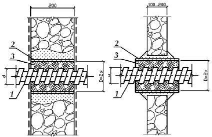 1 – кабель; 2 – труба; 3 – уплотнение с волокнистым заполнителем