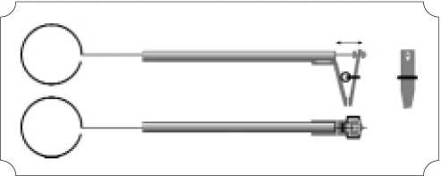 Для работы с такелажем внутри бутылки можно использовать то же приспособление, что и для сборки корпуса. Однако существует не менее удобный инструмент, удачно дополняющий предыдущий. Этот инструмент прост, но очень удобен. Как правило, именно он является основным инструментом моделиста во время сборки модели внутри бутылки (Рис. 36).